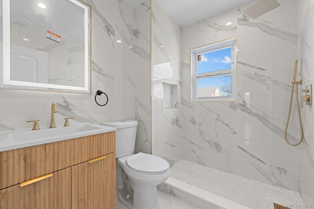 A newly renovated, fully detached single-family home on a quiet, tree-lined street in Queens Village. It features a bright open-concept living area, a sunroom/foyer that can double as a den or office, and a modern granite kitchen with custom cabinetry, stainless steel appliances, and an island. The second floor has three spacious bedrooms and a stylish shared bathroom, plus a finished attic that can serve as an extra bedroom. The fully finished basement—with its own kitchen and bathroom—offers flexible use as an in-law suite, guest space, or recreational area. The property also includes a large yard, private driveway, updated systems throughout, and convenient access to transportation and nearby amenities.